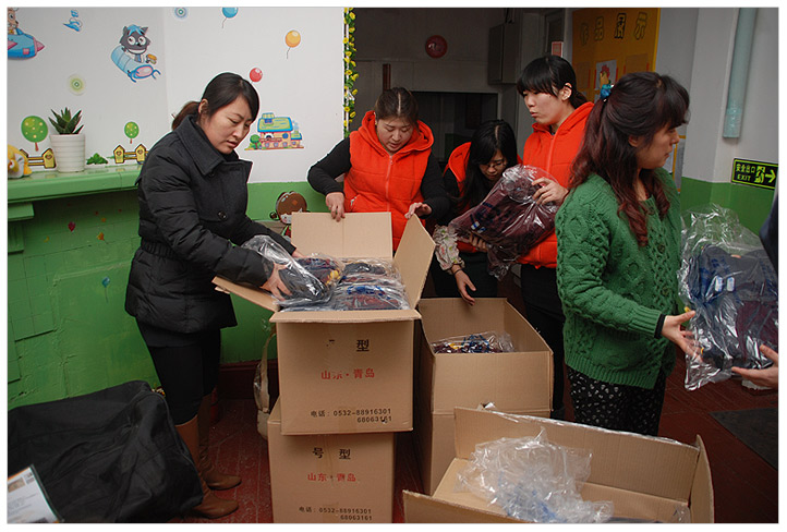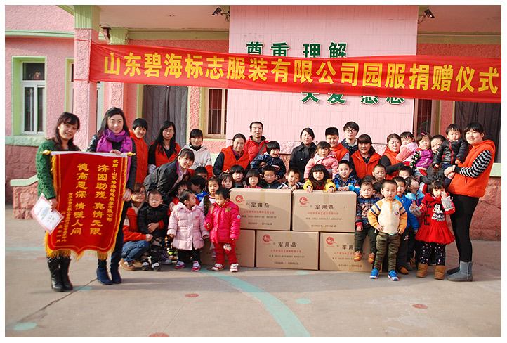 活动当天,小百灵聋儿听障语言训练中心举行了简单的捐赠仪式,将一面锦旗和捐赠证书送到了王卿女士手中,并表示一定会将园服发到每个小朋友的手中,让他们在这个寒冬感觉到春的温暖。小百灵聋儿听障语言训练中心是一所民办的聋儿康复学校,这里的孩子几乎都是先天性聋哑,最小的孩子只有一岁多,他们很多需要带耳蜗,一个耳蜗的费用大约在30万左右,还有每个月的康复费用,对普通家庭来说负担真的很重,当我们来到学校,与韩院长进行了几次沟通后,并且真实的看到了孩子们的现状,公司王总当即决定捐赠100套园服,尽自己的绵薄之力来帮助这些孩子。捐赠当天,看到孩子们穿上园服,笑的那么开心,处处洋溢着快乐的氛围,那一刻,现场所有人都被感动了。“在这个寒冬里,是市北区青青林浩服装行为我们带来了温暖”,韩院长激动地对我们说,“无需感谢,我们没做什么”王总一再强调。就在捐赠当天,有好多爱心人士,给学校送来了玩具、衣服、日用品等等,看到这一幕幕温馨的场面,你还会觉得是寒冬吗?